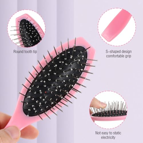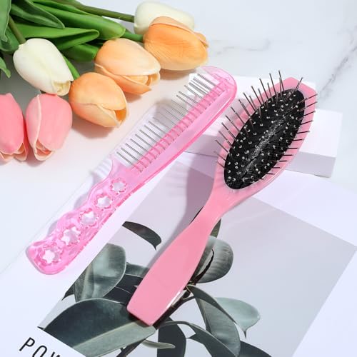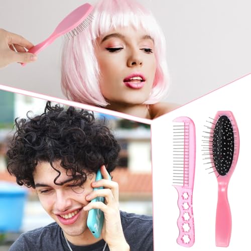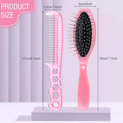 2Pcs Wig Brush Doll Hair Brush Set for Girls and WOmen, Portable Mini Hairbrush for Synthetic Wig Dolls Hair, Stainless Steel Metal Bristle Comb Hair Accessories for Women, 2 Styles (Pink)