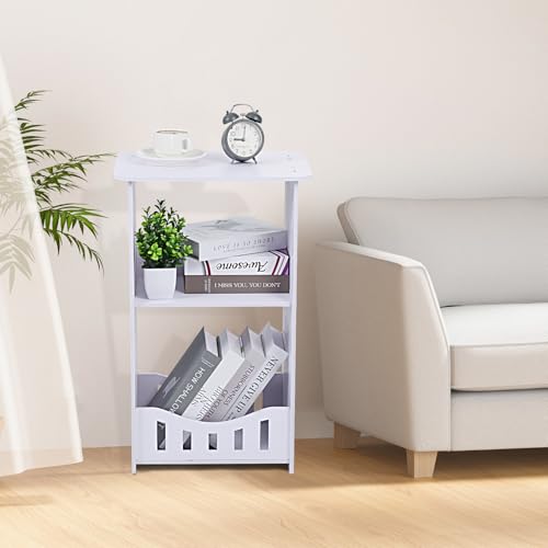 3 Tier Side Table Night Stand, Narrow End Table with Storage Shelf, Extended Desktop & Solid Structure, Small Tables for Bedroom/Living Room/Office/Bathroom, Simple Bedside Table Small Bookcase