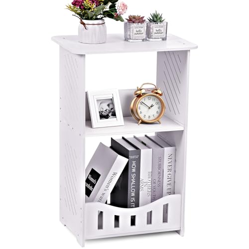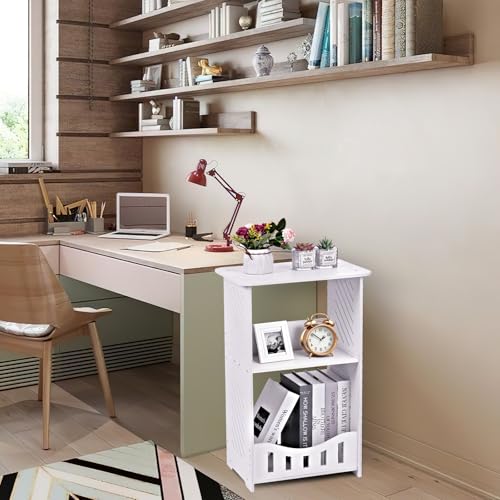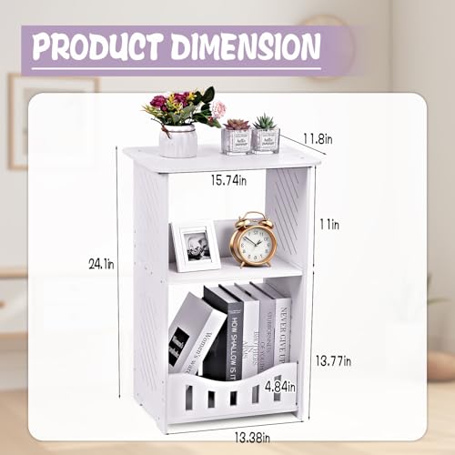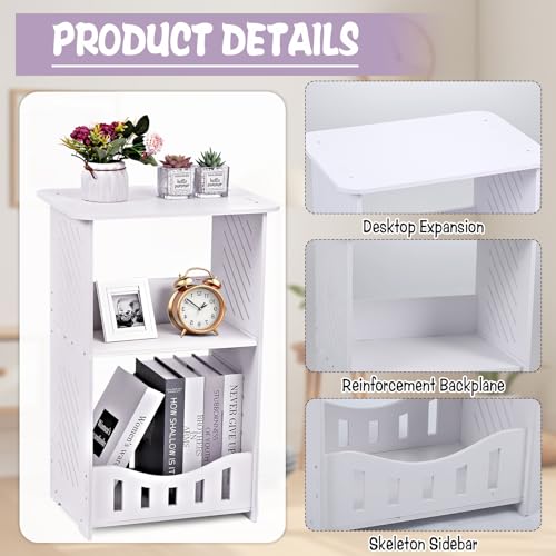 Specification: 3 Tier Side Table Night Stand, Narrow End Table with Storage Shelf, Extended Desktop & Solid Structure, Small Tables for Bedroom/Living Room/Office/Bathroom, Simple Bedside Table Small Bookcase
