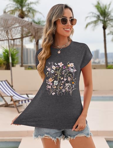 AKEWEI Womens Vintage Flower Print T Shirt Funny Cute Animal Graphic Tees Tops Loose Casual Outdoor Shirt