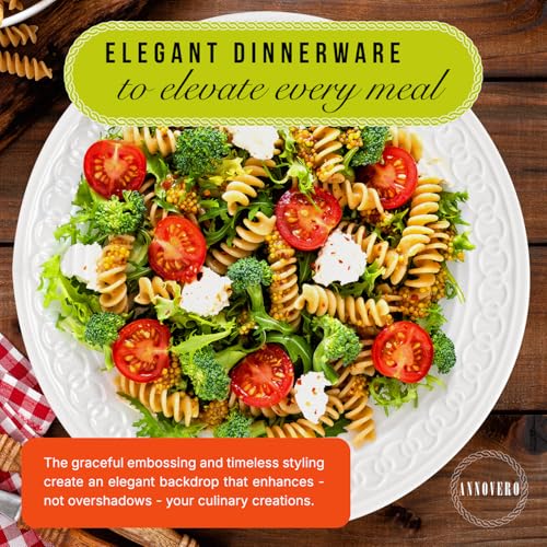 HEIRLOOM-QUALITY, GRADE-A PORCELAIN: Your Annovero dinner set for 4 is crafted from Grade-A Premium Porcelain that is fired at high temperatures making these substantially more durable than ceramic and stoneware sets. Now you have dinnerware you can pass down from generation to generation.