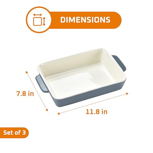 Bruntmor Porcelain Bakeware Set – Rectangular Baking Dish – Casserole Dishes for Oven Cooking – Rectangular Baking Pan with Handles – Lasagna Pans for Cooking – Set of 3 – Gray – 11.8” x 7.8” x