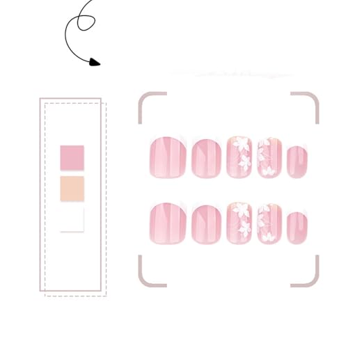 Specification: Flower Press on Nails Spring False Nails French Tip Square Stick on Nails Glossy Artificial Nails Floral Acrylic Nails