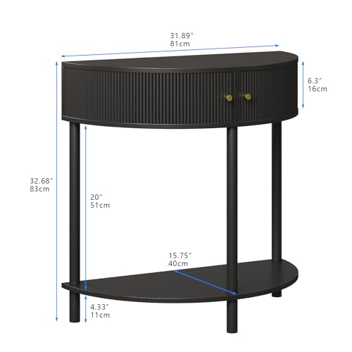 Specification: Trironsun Fluted Half Moon Console Table 2 Tier Narrow Entryway Table with Storage for Small Space Modern Wood Sofa Table with Doors and Gold Knobs Boho Home Decor