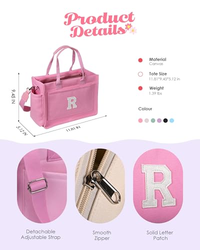 Specification: Gifts for Teen Girls Women, Initial Canvas Tote Bag with Zipper for College, Work, Teen Girl Gifts Trendy Stuff