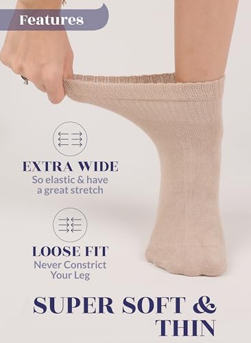 Specification: Hugh Ugoli Diabetic Socks for Women, Extremely Soft, Bamboo, Ankle, Thin, Wide, Loose, Non-Binding Top, Seamless Toe, 4 Pairs