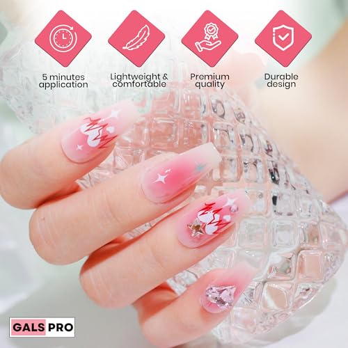 Specification: Medium Press on Nails – Set of 24 Fake Nails with Designs in 12 Different Sizes for Perfect Fit, Cute False Nails Kit for Women with 0.07oz Nail Glue (PINKSTARFLY COFFIN SHAPE, Medium)