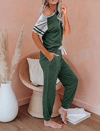 Specification: PRETTYGARDEN Women Summer Two Piece Outfits Striped Short Sleeve Pullover and Long Pants Tracksuit Travel Pajama Lounge Set