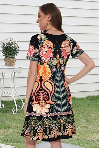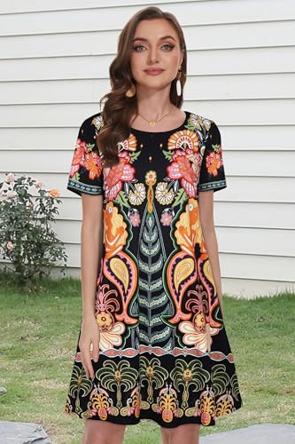 Summer Dresses for Women Casual Tshirt Short Sleeve Floral Sundress Beach Cover Ups with Pockets