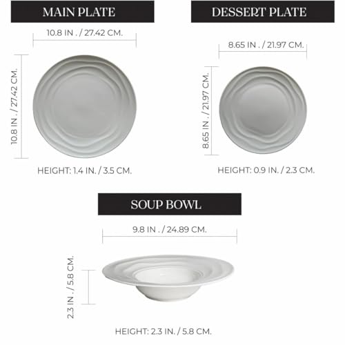 Specification: Unique Elegant White Porcelain Dinnerware Set – 12-Piece Set for 4, Scratch & Chip Resistant, Oven Safe, Timeless Modern Design by Pots & Patterns