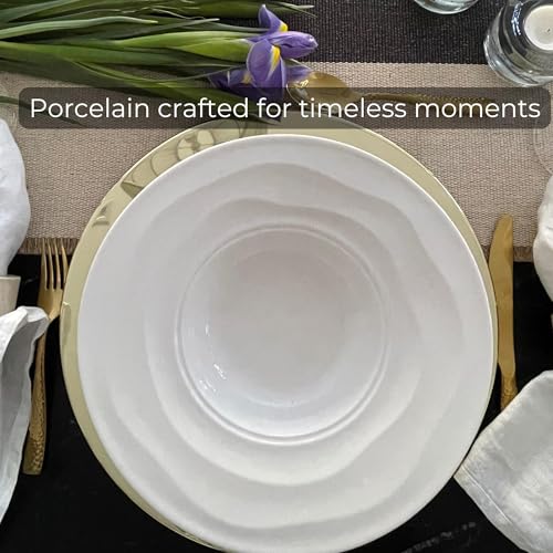 Unique Elegant White Porcelain Dinnerware Set – 12-Piece Set for 4, Scratch & Chip Resistant, Oven Safe, Timeless Modern Design by Pots & Patterns