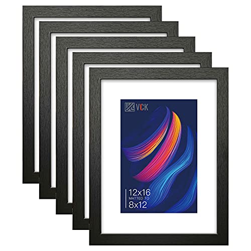 VCK 12×16 Inch Picture Frames, Set of 5 Wooden Picture Frames, Wall Display Decoration for Photos, Paintings, Landscapes, Posters, Drawings, Artwork (Black)