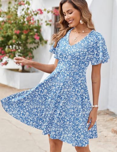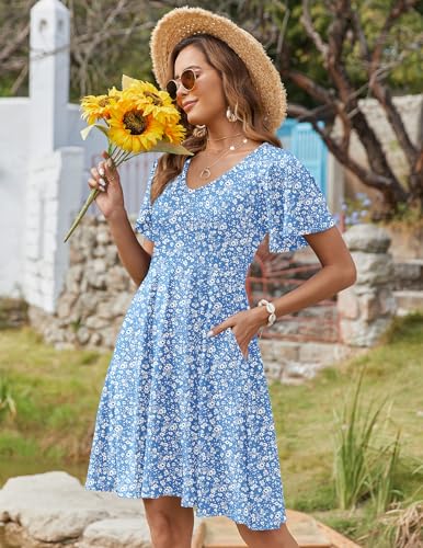 Zeagoo Womens Summer Dress Casual Swing Floral Ruffle Short Sleeve Sundresses Beach Mini A-line Shift Dress 2025 with Pockets
